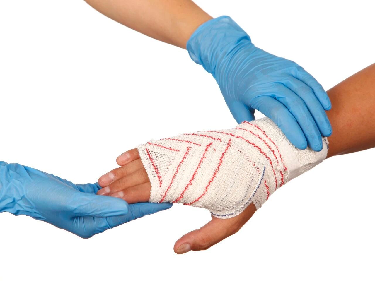 6 包扎前做好自我防护,戴医用手套;如果用裸露的手处理伤口,包扎后用肥皂彻底清洗双手。
