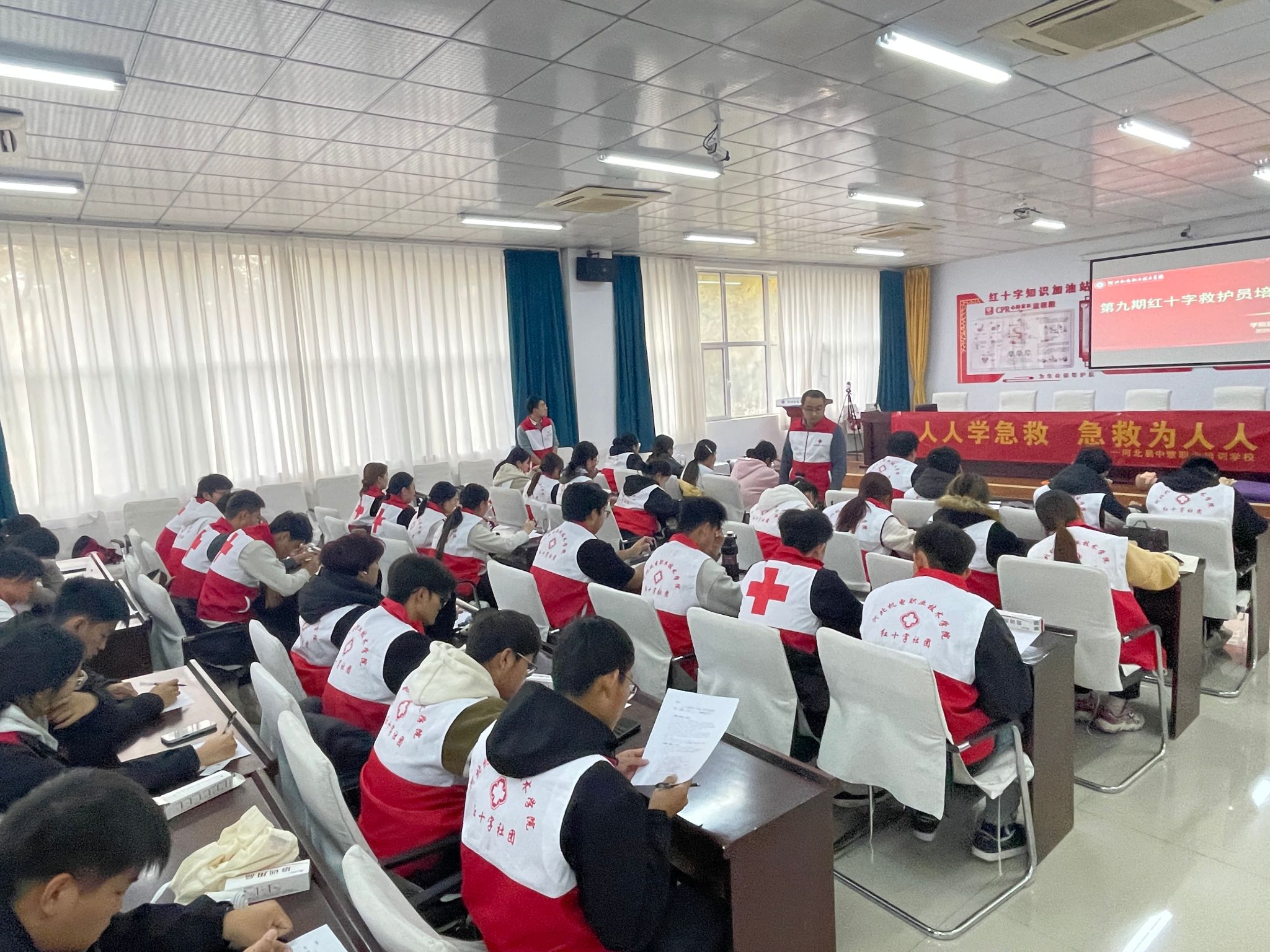 为夯实校园应急救护基础,强化红十字社团成员的责任担当与实操能力,近日,我校医务室联合市红会、易中慧培训中心在学院应急救护培训中心50余名2025级红十字社团新成员开展救护员培训。