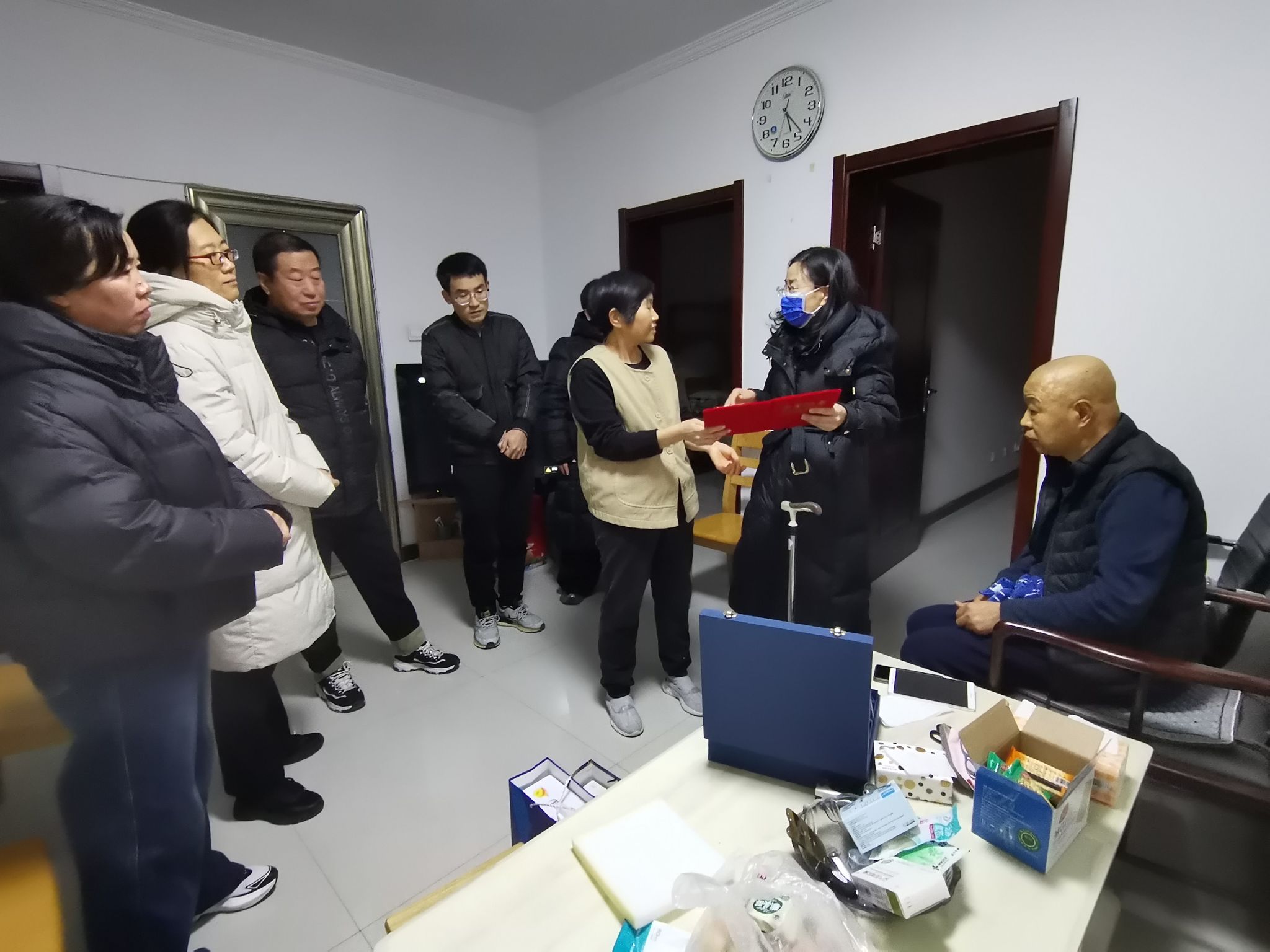 岁月如歌,薪火相传;温情暖冬,致敬韶华。近日,我校医务室全体人员带着满满的敬意与祝福,专程前往张占军医生家中,为他举办一场温馨而隆重的荣退仪式,代表学校向这位默默奉献的校医送上退休证书与奖杯,致以最诚挚的敬意。