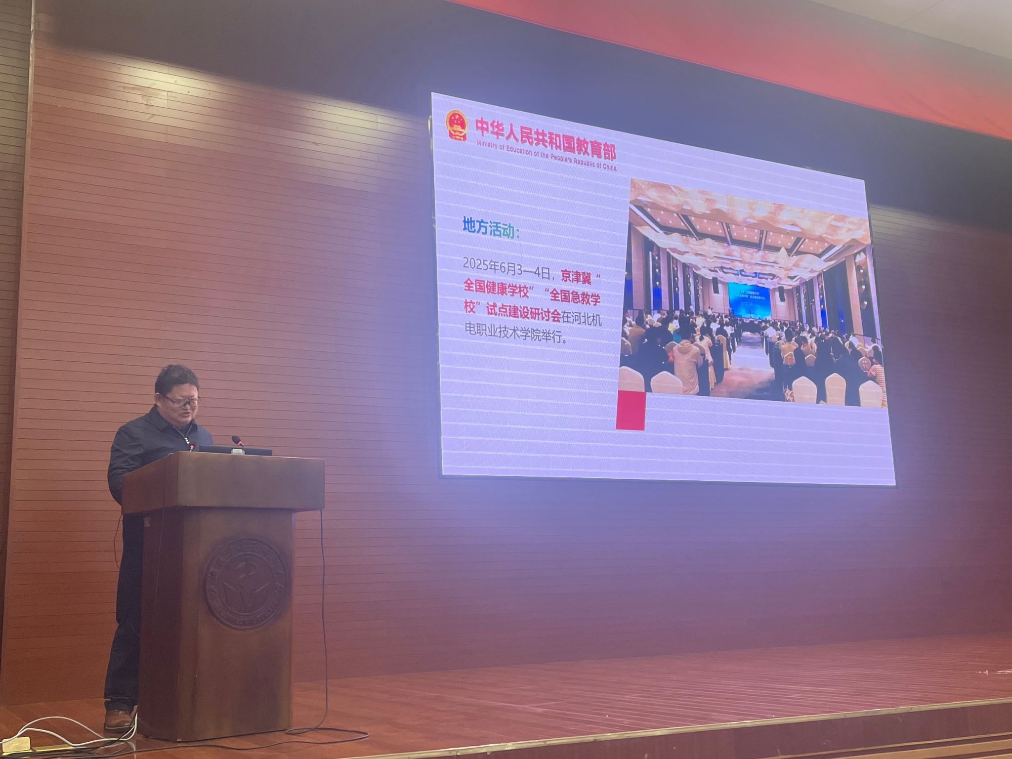 教育部体育卫生与艺术教育司卫生健康处处长樊泽民在工作部署中,特别对我校 2025 年成功承办京津冀 "全国健康学校"" 全国急救学校 " 建设研讨会的组织能力和专业水准给予高度评价,肯定了我校在健康学校建设、急救学校教育推广中的示范作用。
